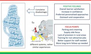 Despite the different types of countries and the welfare states they represent, the experiences of adult learners and practitioners were strikingly similar across countries. From Scotland to Bulgaria, young adults were happy they had decided to participate and reported an increase in their self-confidence. In all countries, education and training intervention were a combination of group activities and individualised support. The young adult learners, whose lives were characterised by strong levels of cumulative disadvantages, mostly preferred one-to-one support. Across all countries, practitioners reported the use of outreach and cooperation with a large range of social services in order to attract these adult learners. Given their disadvantages, they are unlikely to enrol for a course independently.
